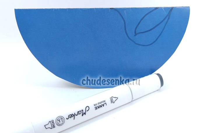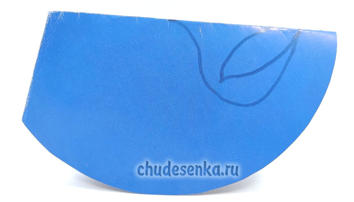 С одной стороны у сгиба круга нарисуйте волну, показывая спинку и хвост с плавниками.