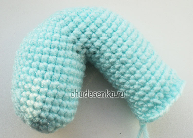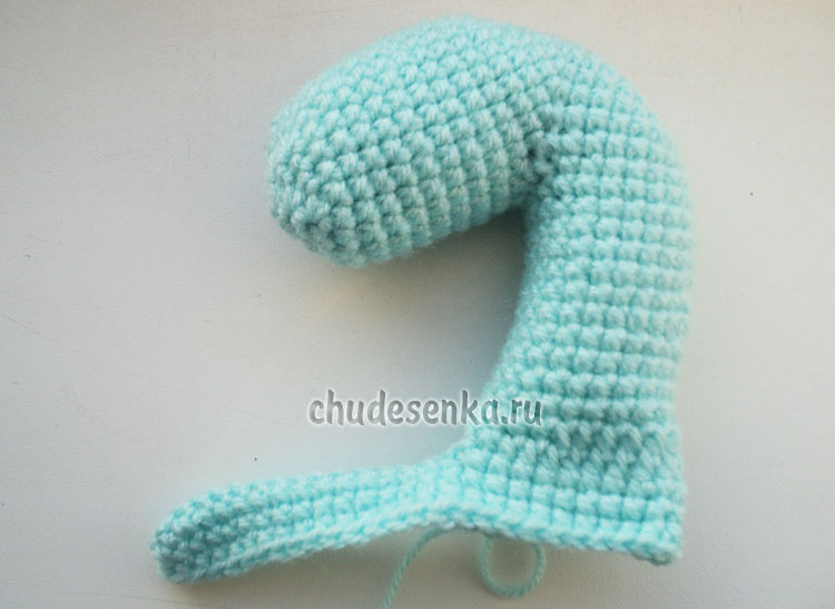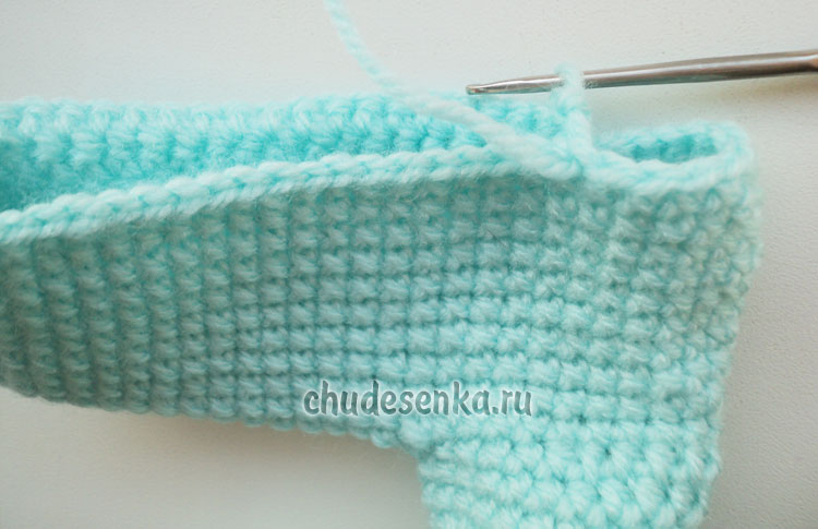 15 ряд – вяжем одиннадцать ст.б.н., делаем убавку, вяжем еще пятнадцать ст.б.н.