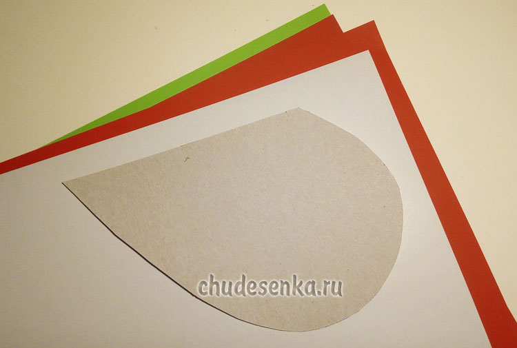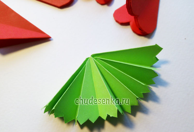 Край зеленого треугольника нарезаем зубчиками, а красных – полукругом.