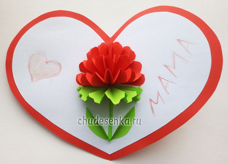 Вот такая красивая открытка для мамы у нас получилась.