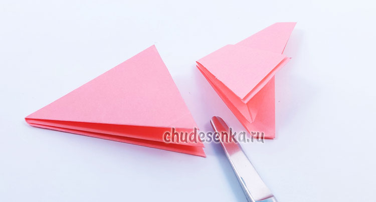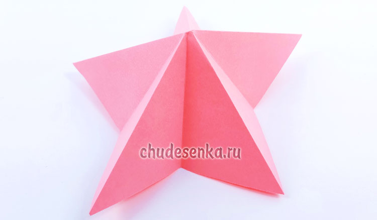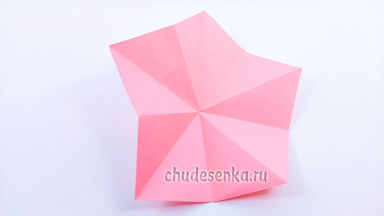 10. Когда вы разложите этот треугольник, получится пятиконечная деталь, которая станет основой для складывания тюльпана.