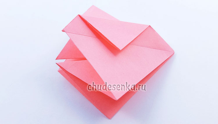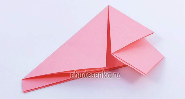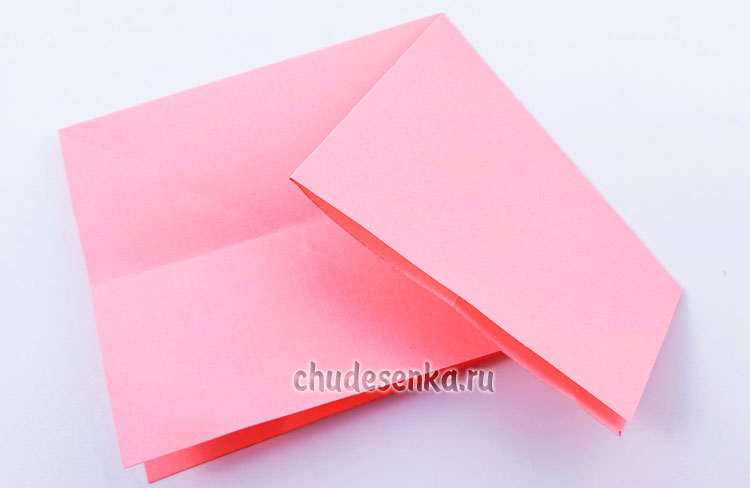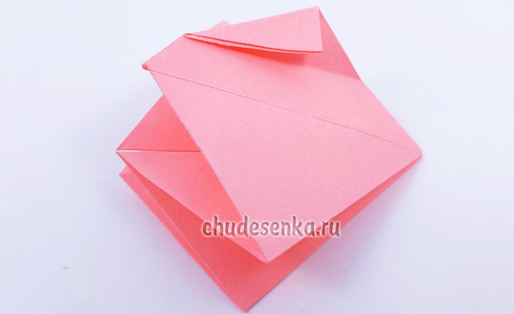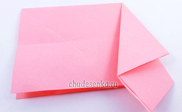 3. Один угол подогните вверх, но не заглаживайте эту складку, а лишь придавите пальцем, чтобы наметить середину, нужно ее выделить.