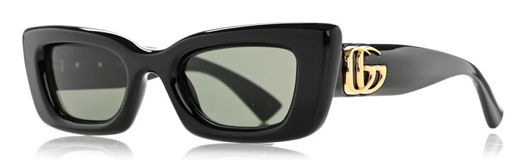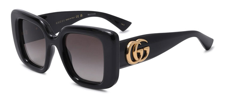 Это самый обширный сегмент в каталоге. Женские солнцезащитные очки Gucci этой категории отличаются широкой пластиковой оправой (часто с эффектом «панцирь черепахи», черным или темно-синим цветом) и крупными двойными буквами GG на дужках или переносице. Такие модели: